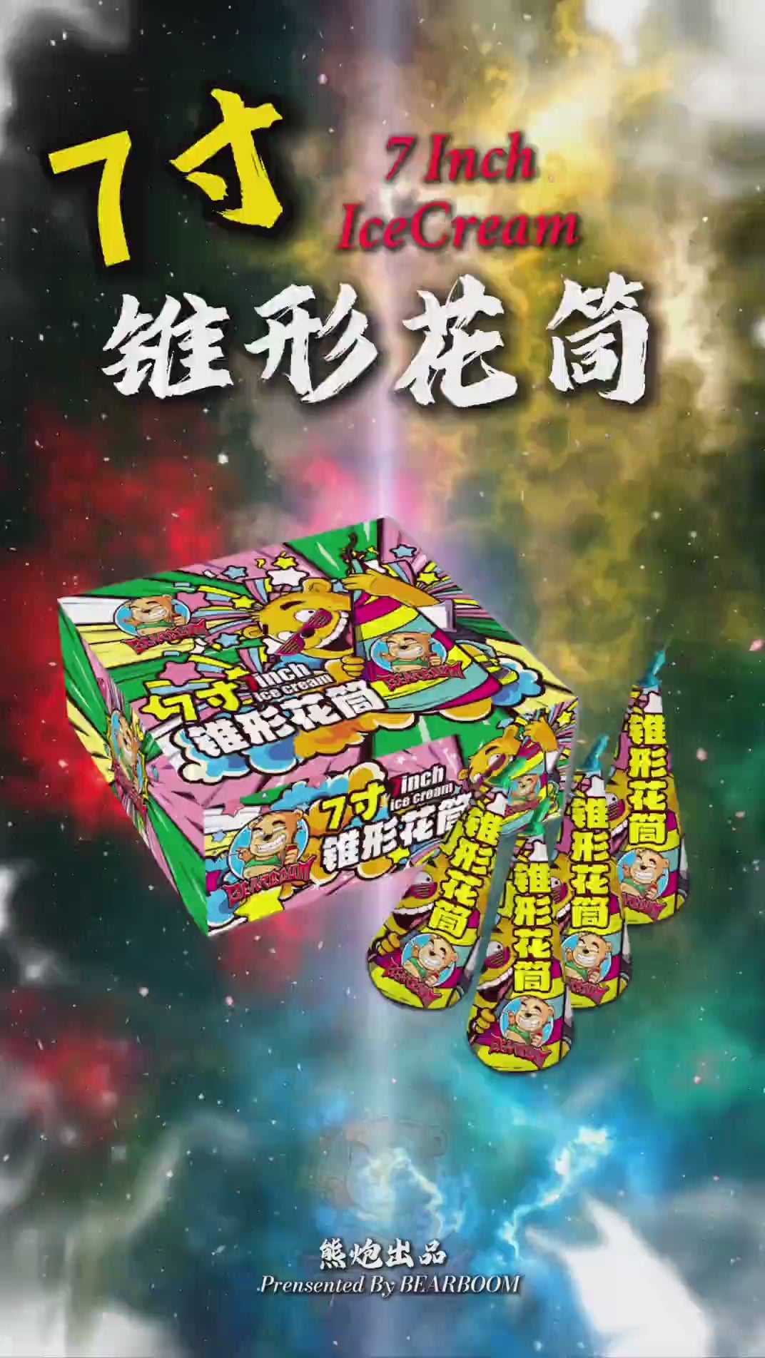 锥形喷泉烟花,固定摆放于地面,点燃后喷射火花和闪光。